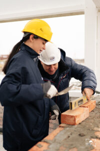 Строительная бригада ООО «ГранитПромСтрой» показала для студентов Саратовского архитектурно-строительного колледжа мастер-класс по кирпичной кладке, навыки использования новых материалов и инструментов, которые применяются на реальных объектах парка. Перед мастер-классом со студентами провели инструктаж по технике безопасности. Активное участие в данном мероприятии принял генеральный директор Ассоциации «Объединение строительных организаций «Волга» Владимир Злобнов, который является Почетным строителем и имеет большой опыт работы в строительстве.